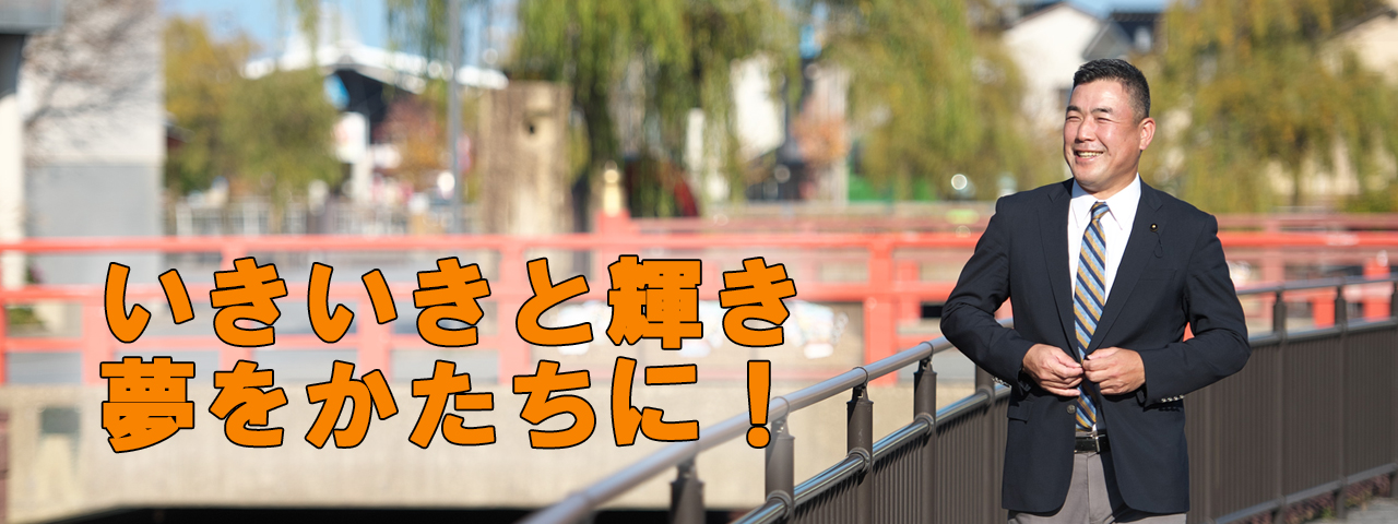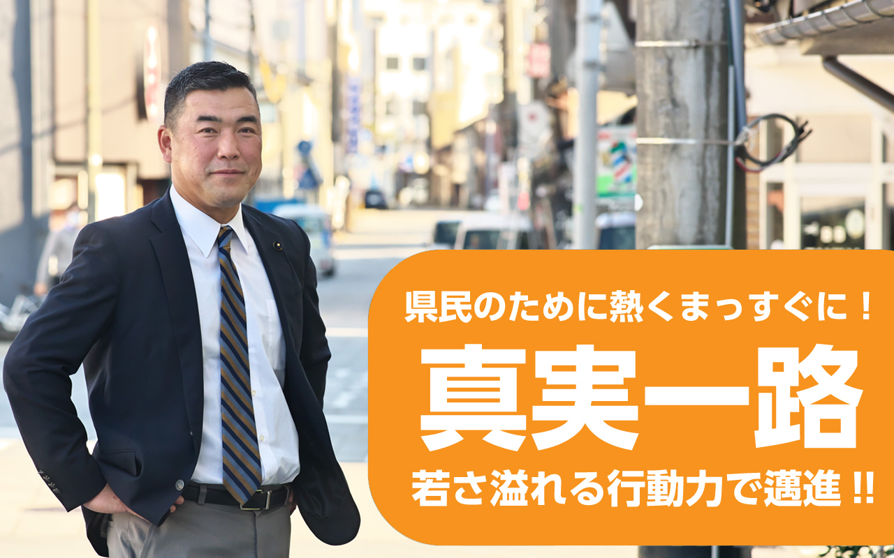 県民がいきいきと輝き夢や希望を抱くことができる社会を創造するため若さ溢れる行動力で「真実一路」で邁進します。皆様とのコミュニケーションを通じ、政策と地域が包括的・有機的に連携する石川・七尾を実現します。